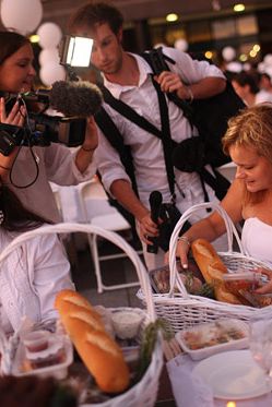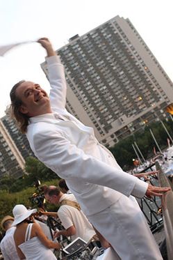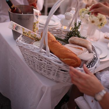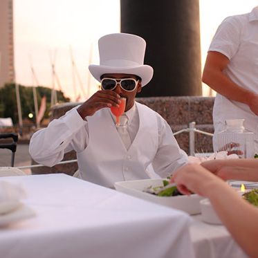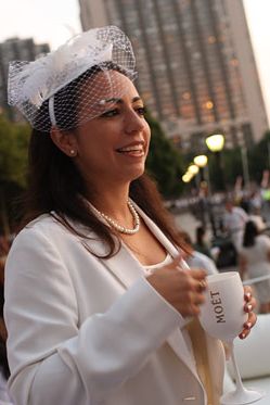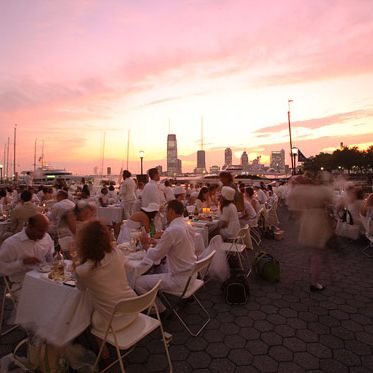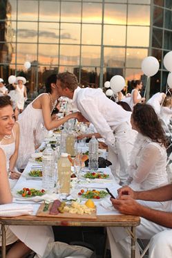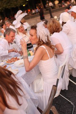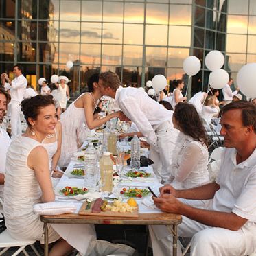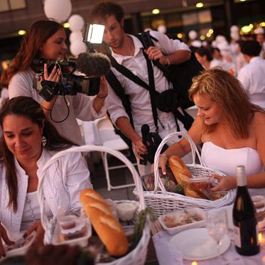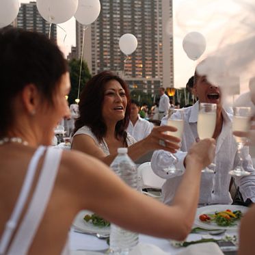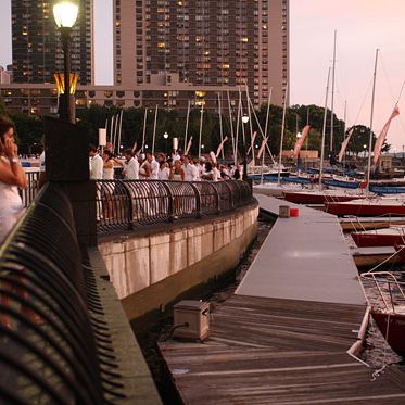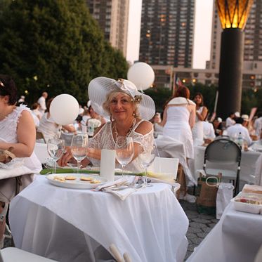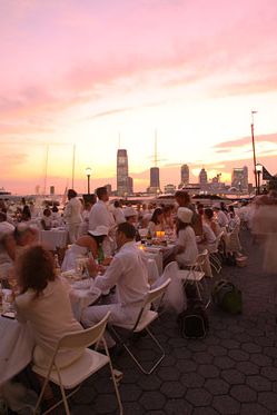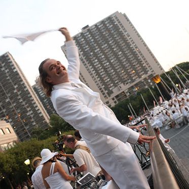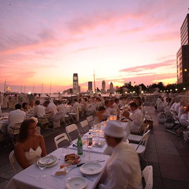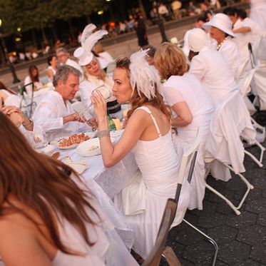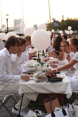 乐队在演奏,船桅(颜色很协调)在夕阳的衬托下摇晃,普通的纽约人路过,他们在慢跑,推着婴儿车,骑着送快递的自行车。一位身穿黑衣的女士拍下了这一明亮的白色奇观的照片,客人们戴着头巾、斗篷和各种各样的头饰(不是必需的,但很受欢迎),在他们带来的或预定的篮子里吃着食物和葡萄酒。马路对面,有一群喝啤酒的人在外面喝酒P.J.克拉克的这在Dîner的与会者和组织者看来是没问题的。毕竟,没有观众的奇观还算什么?说到这个,你可以在我们的幻灯片里随便看一下。