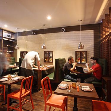 This week, Zak Pelaccio’s second Fatty ‘Cue location quietly opened to the public — the “official” opening date is next Tuesday — in the former Cabrito space. But while the new restaurant may share a name with theBrooklyn outpost原来相似性很小。的space is divided into distinct dining areas, with a large private table in the back, next to the open kitchen. Changed, too, is the menu, which puts more emphasis on composed dishes than the Brooklyn location. (It will also change “almost daily,” according to the Fatty Crew.) The flavors are the same — smoky, funky, and East Asian with a little Italian influence thrown in — but now they show up in dishes like Trippa “Malaysiana,” greens with yuzu, andEdwards country hamwith pretzel bread and aged butter. Even more interesting: Certain seats will be privy to Thai-style cocktail service, where diners essentially buy a bottle of booze, and the restaurant supplies a cart of mixers for the table. Take a look at all the menus, and a slideshow of the space, straight ahead.