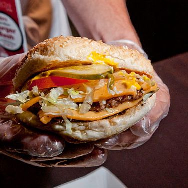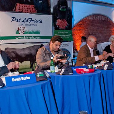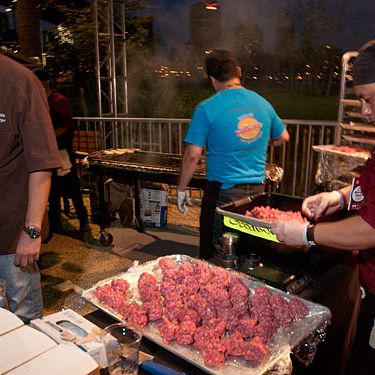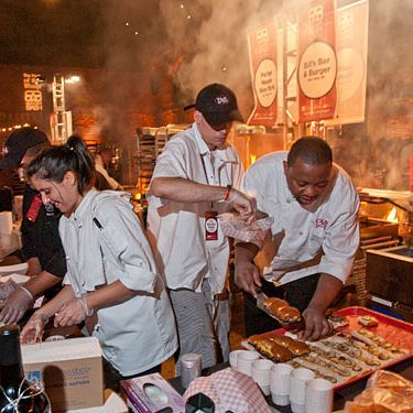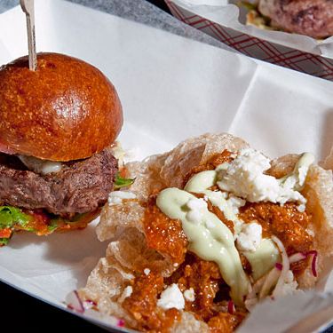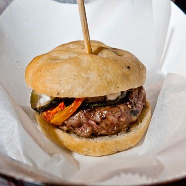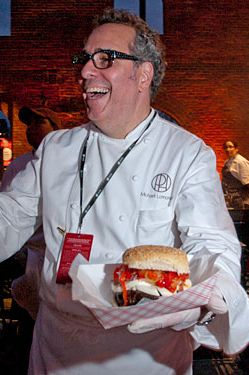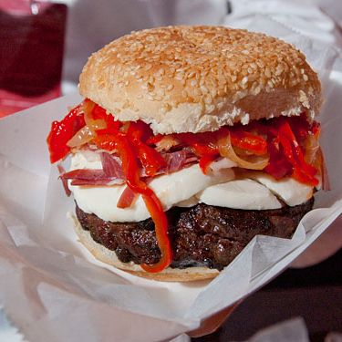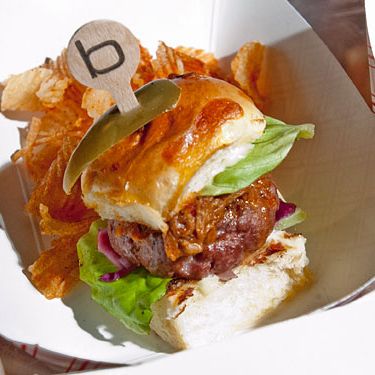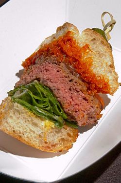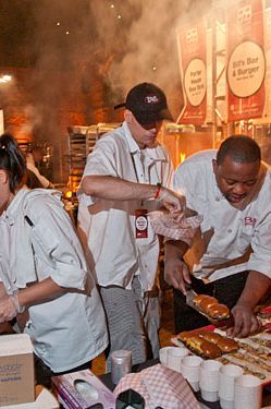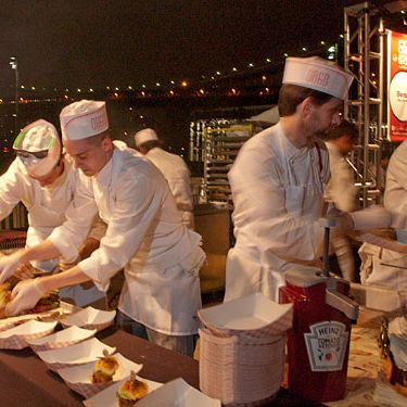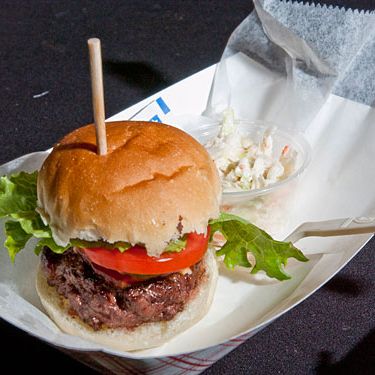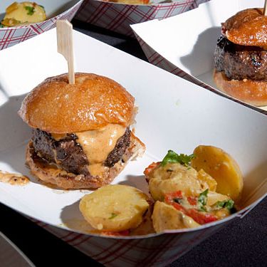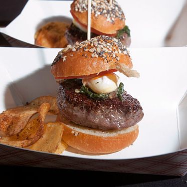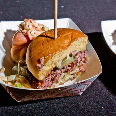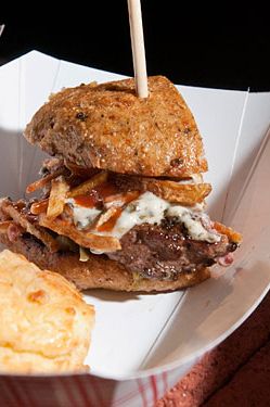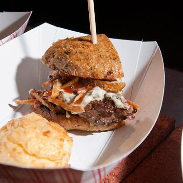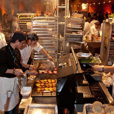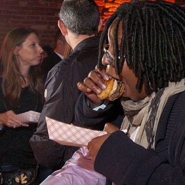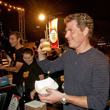 的纽约市美酒美食节这个周末正如火如荼地进行着,昨晚是它最著名的活动,lafrieda赞助的蓝月亮汉堡盛宴。乌比·戈德堡(Whoopi Goldberg)今年取代了瑞切尔·雷(Rachael Ray)的位置担任主持人(查看我们的幻灯片,可以看到这位女演员真正深入的照片),这让我们熟人中一个聪明的人问,为什么没有人做乌比·戈德堡(Whoopi gold burger)。一些食品界的大品牌在Dumbo的烟草仓库里闲逛,包括博比·弗莱(Bobby Flay)鲍比汉堡宫丹尼尔·布鲁德(Daniel Boulud),他后来也出现了,密切关注着情况DBGB以及人诉食物里奇曼(Adam Richman)和大卫·伯克(David Burke)一起坐在评委席上,奇怪的食物安德鲁·齐默恩和美食频道明星安妮·伯勒尔。