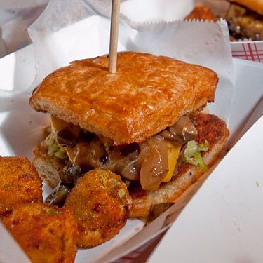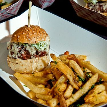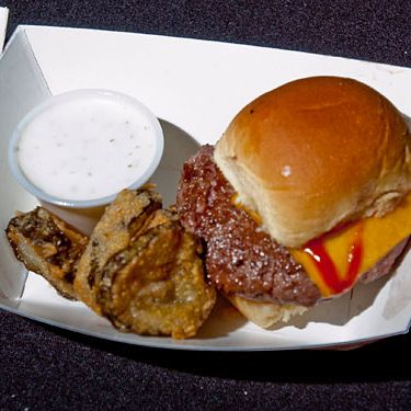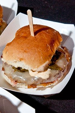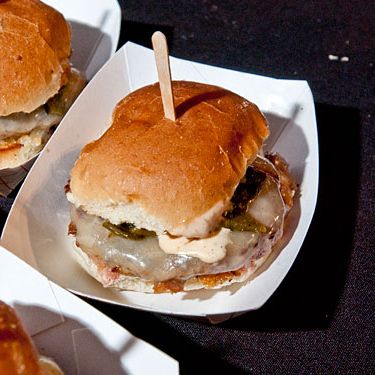 我们偏爱经典的双肉饼芝士汉堡Dram商店,以及包子的变化质量肉,配上美味至极的融化西兰花芝士。我们最喜欢的还有亨氏最佳着装汉堡奖得主克里斯·桑托斯美人与埃塞克斯以及人民选择奖得主(重复2009年的冠军)汉堡桶的乔什·卡彭。最终(鼓声响起),大奖属于卡彭,他也被评委评为第三名,Marc Forgione排名第二的是他的百吉饼包“宿醉汉堡”,以及富兰克林·贝克尔(Franklin Becker)的培根切达汉堡“威斯康星汉堡”亚伯&亚瑟美国排名第一。向所有人致敬。通过我们的幻灯片,你可以自己看看其中的乐趣。