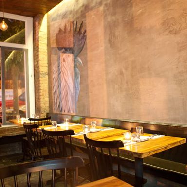 Which is not to suggest that he doesn’t do big he-man flavors, too, or that his “New York firehouse” chicken isn’t perfectly flattened, crisp-skinned, and imbued with a fiery orange sauce inspired by the spiedies of his upstate youth. That one would qualify as a traditional main dish, should the small-plate format not entice. A cool dark-chocolate pot de crème makes a fine ending, no matter which route you take.