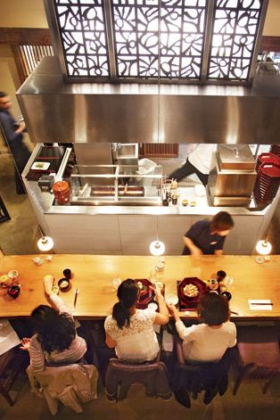 我同意那些挑剔的日本美食专家对Ootoya的荞麦面和刺身的看法,而且在城里可能也有更好的经典猪排。但如果你像我一样,花时间在日本各地朴实无华的餐厅里吃得很傻,或者如果你厌倦了把钱花在越来越昂贵、不碳排放的寿司上,想要体验一顿繁华亲密的平民东京餐,那么这里就是你的选择。就像在东京一样,你可以在餐馆里和工薪族一起喝红薯烧酒酒屋有一天晚上,我很喜欢这里的手工清酒(有热的也有冷的),旁边是一位头发尖尖的绅士,他一边吃着晚餐,一边随着耳机里响起的科技流行音乐的节奏点头。在伟大的日本传统中,甜点种类很少(有三种),质地很重。如果你像普拉特家的孩子们一样,喜欢黏糊糊的捣碎糯米团,这对你很有帮助。在这里,糯米团被折叠成一碗绿茶冰淇淋,或者被切成四方形,用竹牙签和大豆粉撒上。