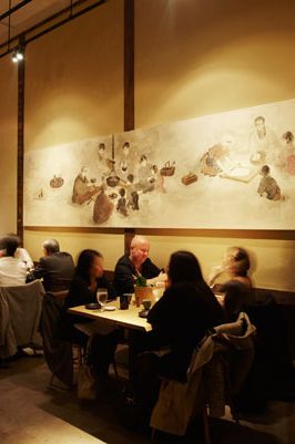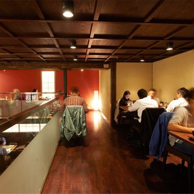 所有这些忠实呈现的菜肴都可以在Ootoya订购à点菜,但首选的用餐风格是teishoku这意味着你的主菜和一排配菜(味噌汤、咸菜、可用的chawanmushi蛋羹)一起被端上餐桌,放在一个大漆盘上。这种组合可能会让人吃不消,尤其是如果你点了菜单上“炖火锅”(煨火锅)部分的大号套餐,其中有白垩色、蒸得过透的buta yasai nabe(猪肋排),也有美味的炸鸡kaasan ni,后者配上萝卜丝和溏心鸡蛋,浇上甜甜的酱油汤。你还可以吃到一桶豆汤煎猪排,不过普拉特兄弟认为,这家店真正的特色菜是切好的猪里脊肉排,它以经典的方式摆放在一个银丝格格上,旁边放着一大堆切碎的卷心菜,蘸着浓烈的、半甜的海鲜酱。