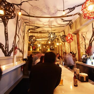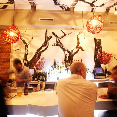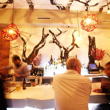 FormerTop ChefcontestantLeah Cohen’s newish pork-themed restaurant,Pig and Khao, is an Asian Hipster destination of a much more familiar kind. The narrow little storefront room on Clinton Street has been fitted in the now-time-honored no-reservations style with communal tables, a small open kitchen, and a variety of evocative tchotchkes (Thai urns, a carved-wood dragon), presumably gathered by the cooks during the course of their de rigueur food tours of Manila, Hong Kong, and Chiang Mai. Cohen has sprinkled her modestly priced, user-friendly menu with a variety of Chang-style pork dishes (curry rice salad with minced pork, grilled pork jowls, crispy “pata” pork leg), and during the warm months of the year, you’ll be able to enjoy your pork dinner outside with bottles of Asian beer (Asahi from Japan, San Miguel from the Philippines) in a little garden space strung with lights.