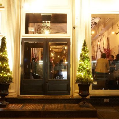 As any devoted Changophile (orTorrisiaddict) will tell you, however, the trendy, nouveau comfort-food restaurants of today tend to work best when a chef has a focused, visceral (read “childhood”) connection to the cuisine they’re working in. At this helter-skelter Morimoto production, this key ingredient is clearly missing. Like many of the mash-up savory recipes, the desserts—a French tart made with persimmons instead of apples, tiramisu sliders touched with Kahlúa, a soft, sweet square of Thai rice pudding with a brûléed top—taste like something you’d encounter on a manic TV cooking competition instead of at a first-rate New York restaurant kitchen. And the sense you get, as one dish is cleared away and another arrives, is that, instead of cooking from the heart, this talented chef is coming up with his slightly tortured, transparently trendy recipes by putting on a blindfold and randomly throwing darts at a map.