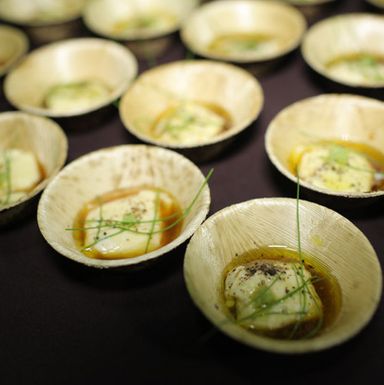Photo: Melissa Hom"Yu-burrata" with truffle dashi and fresh wasabi from Morimoto.