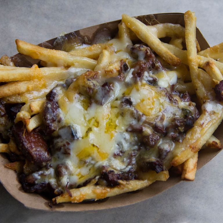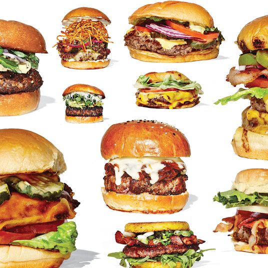 索贝尔的善意包括在三明治发电厂的厨房里面Court Street Grocers和英里端熟食和血统表演。他的每个三明治都简直就是一流。与Bunk一样,重点是升级经典。因此,土耳其英雄的火鸡在地段2, then loaded with Swiss, lettuce, avocado, and pickled red onion onto a Sriracha-mayo’d Caputo roll. It’s moist, solid, satisfying. Ditto the tuna melt with sweet housemade bread-and- butter pickles on pan-griddled multigrain bread. There’s also much to love about the juicy Italian combo (mortadella, salami, soppressata). It comes with sliced onion, iceberg lettuce, provolone, and Parmesan, and a three-pronged approach to lubrication: a classic oil-and-vinegar dressing, a piquant muffaletta-like olive-and-pepper spread, and a swipe of Duke’s mayonnaise. Yes, among the cognoscenti, dressing Italian heros with mayonnaise — and not even Hellmann’s! — is considered an outrageous act of desecration akin to dousing USDA prime steak with Heinz. But it’s a trick Sobel learned during his stint at Court Street Grocers, and the practice is apparently winning over skeptics, the Underground Gourmet included.