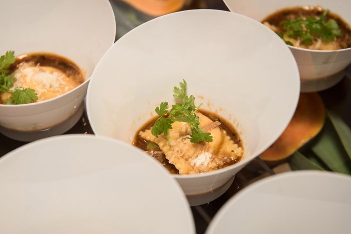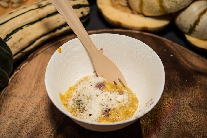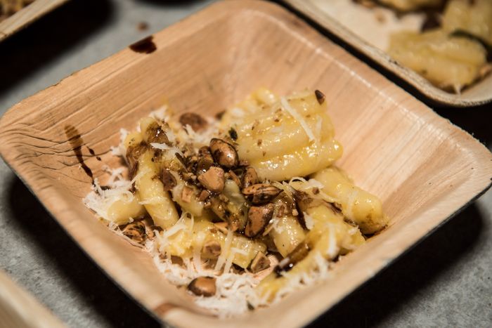 L'Amico的zucca面条和Hen-Owen蘑菇、dlicata壁炉、Sage棕黄油和南瓜种子gremolata