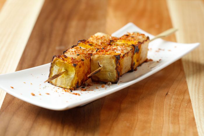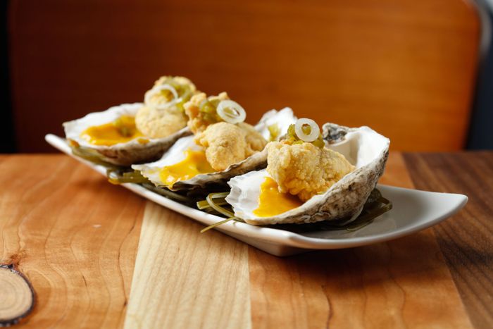 Baca使用日语非常规方式烹调南方(包括德州)成份取他的播送机电机honomiyaki, 听上去像Baca各种影响的最纯合成物, 并用它刮开的benton火腿、Duke蛋黄酱、烟叉和Otafuku酱日式炸鸡在马铃薯面粉中挖出并配有togarashihoney和cluppd西瓜,加茄加松和加焦菜chowchow、bate芥末和katsu茄子做菜 Baca说,像茄子配方,但没有奶品和面粉