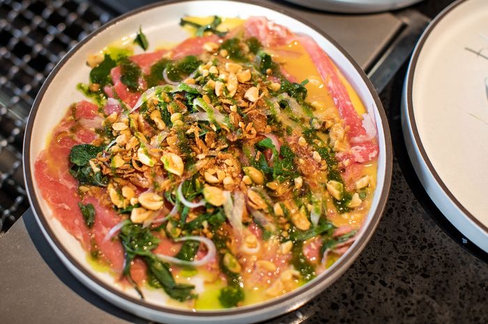 其中一个东西,Ly说, 是他所谓的越南烧烤, 焦点他和Vo第二餐厅Vo从小在密西西比户外吃东西 外边会发现 在越南用木炭堆做饭烤肉是本市越南餐厅的基本特征, 但没有餐厅以这种方式专为这种烹饪方式服务Ly表示:「NYC无法拿出一壶木炭,取而代之的是,他们正在做他称之为“现代精化版”,从日韩烧烤中借钱,使用日元台式烧烤机加圈圈,Ly说免去木炭口味