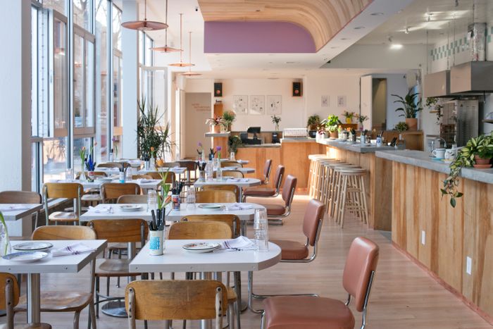 菜单显示可能注入怀旧纽约感知度-多一点-但空间本身不复元静脉长得更多MeMe餐厅大于巴尼格林格拉斯带艺术和墙面画 高窗和多块未完成木从头开始 Gertie从上午8点开至4时