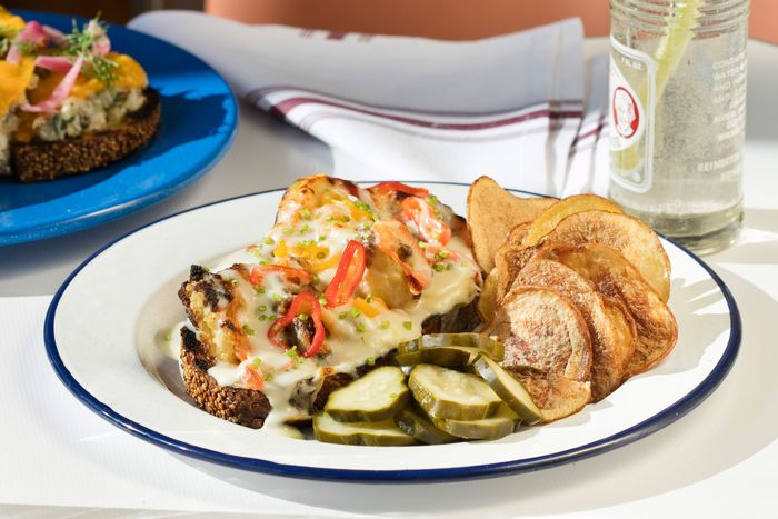 内插早餐三明治 与内插空间对拍 包括AnythingEgg和Cease 配有菜辣椒、牛肉香肠和蘑菇sunnyD颜色和cinnon英语松饼等边盘将服务到下午4时,上午11时开始提供午餐三明治都流传经典纽约三明治:Challah转盘肉特辑,阅读像义大利meets-Jewishdeli白鱼沙拉融化带轮播冬菜白酱和Patty Reuben小姐