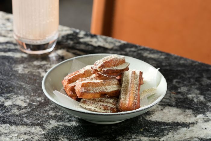 阿门尼使用相似方法甜点范围从菠萝加椰子软糖到粘性toffe布丁鸡尾酒菜单等宽化林德和酒保哈里森甘斯贝格Katz说,“这里比重命名版酸和曼哈顿大得多。”指向机长Kidd或Mezcal飞行规划tgarashi的黄油洗朗姆酒组合工作上有相似的创造力 非振荡饮料考虑Hojito语,它配草药、薄荷树和石灰、药草和通尼治