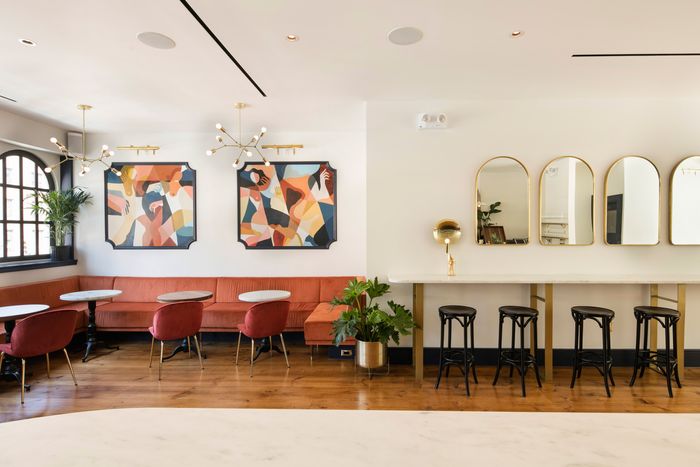 位居第八大道18街和19街间,优雅,回落树鸟5月21号开放支持者会发现近十多台台式机机,机椅和浅褐色皮质餐桌加两个角间大聚会,两者都坐落在L.A.画家Jessalyn Brooks裸体图画像下