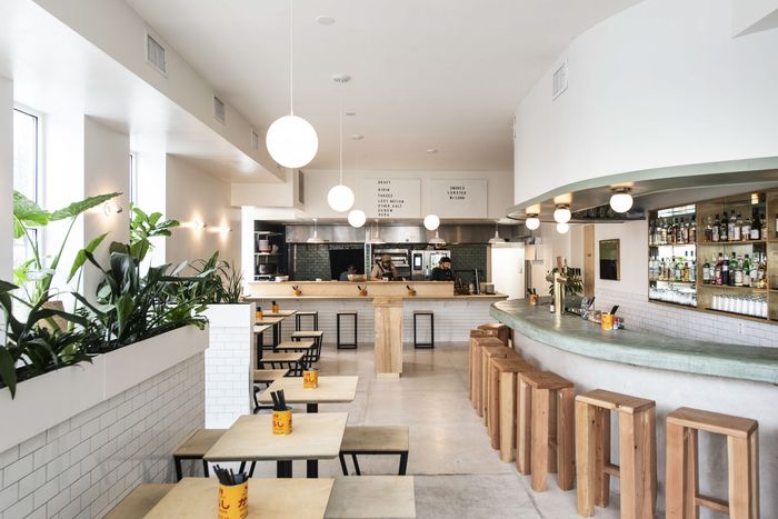 葛乐迪的协方可能惊讶地发现 莫餐厅的饮料菜单 与其姊妹餐厅相比断然分割 后者已成为高叉tiki鸡尾酒的目的地客户可选择7杯鸡尾酒和高球(均配有5分或更少成份)、3杯家庭酒、本地和进口酒和纽约和缅因酒酿酒厂的啤酒批发像Oxbow和Oxbow