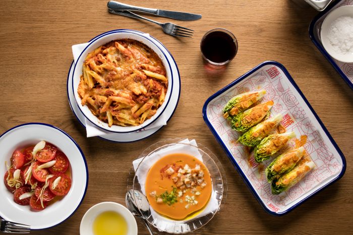 经典和家常便饭似乎是Andrés的指导原则, 午餐上会发现西班牙最大点击量和老奶奶式慰食量并发前类中:gazpacho打入最平滑最紧凑的精髓span和谐搭建无法分辨大蒜番茄尾端和薄片破碎板开始牛排鸡排简单标注西班牙梯度图火腿和奶酪或菜单称La Cocina de Abuela, 有肉类、白菜菜和烤面条, 包括甘蓝加鸭肝、鸡肉和猪肉,仿佛罐头罐头