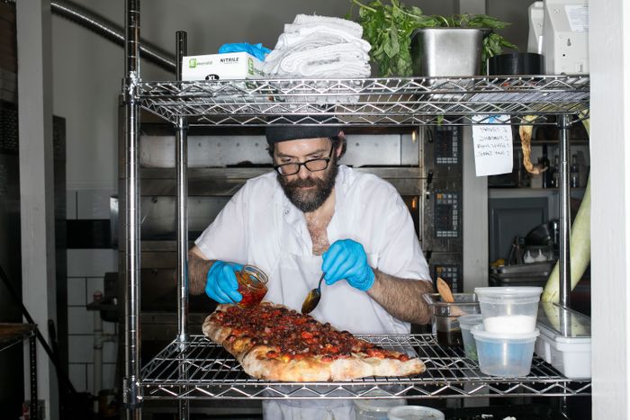 所生成的肉丸体温和多汁内含,伊斯顿技术不依赖任何技巧,他说南义大利家庭餐厅的肉丸制作方式“长长时间 ” 。 他的老式方法扩展至他食物的其余部分,像长发令令他的面包深入口味和纹理泽西开业前,Eston简单工作布希威克比扎操作程序共同拥有者Mike Fadem表示会收到调试组合令里克真有趣 法德姆说并想完全按义大利语做人会点比萨加丁-比如说,把蘑菇和anchoves加到margherita派上-“他会沮丧并像,'他们为什么要这样做?'