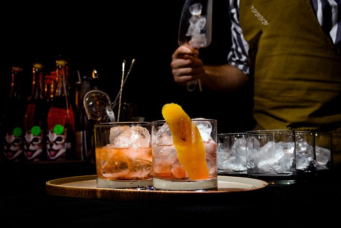 底码Esteban鸡尾酒与mezcal和Cocchi罗莎