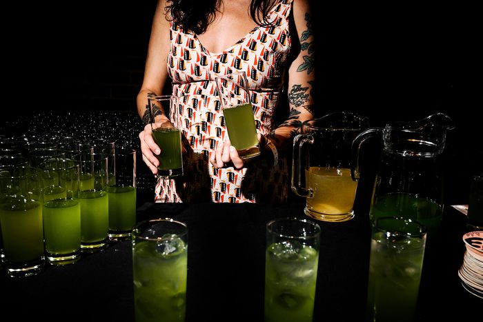 Avice插座提供绿色开灯鸡尾酒波旁酒、苹果和甘菊