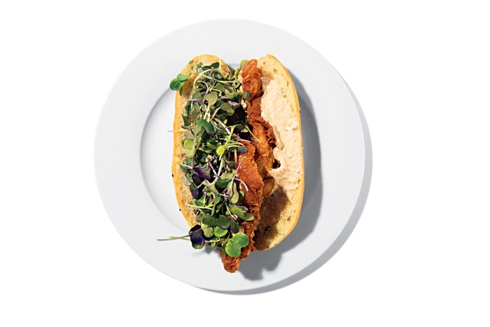 Yoo主厨唐人街金餐厅想象食物会看吧不变,即使组件不同厨师说,“这是块脆鱼包子,类似于他们在唐人街面包店卖的鱼包子。”微绿鱼取自布希威克养殖场,brioche包用素黄油替代物制作,tartar调料从素美乃滋开始减少对动物产品的需要