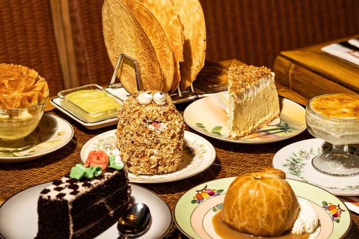 泰茶babka不是菜单上唯一的甜点酒吧里会装箱各种甜点和菜单其余部分一样,它混合传统和聚变项和香蕉布丁 Danzer说Redding补充道,他们用bons叔叔Thai朗姆酒布丁,指向椰子怪物蛋糕时,她补充道,“你可以看到我们非常认真地对待自己。”