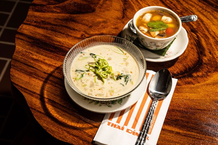 安列丁和马特丹泽-诺利塔后已婚主厨布尔斯大叔泰族用杀手Khao大豆开通新餐厅泰餐厅.莫特街角点表示他们对泰式菜和本世纪中叶餐厅烹饪的兴趣之结列丁在泰国长大 并会吃异国美食像鸡和比斯奎克餐厅也取启发 从一个非常特殊的地方