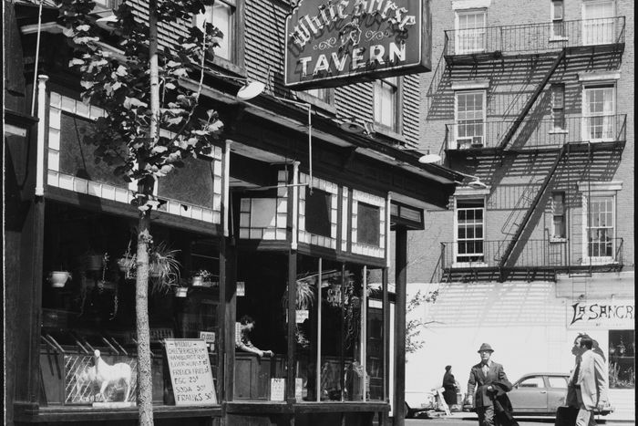离人行道西边稍远点, 带自拍棒的家伙制作视频 关于市第二年吧站在百叶窗静态商店前,他讲假冒故事,但经常重述故事,讲浪漫诗人Dylan Thomas在那里如何喝死自己微小文学历史保留15元酒以该地最出名前常客命名,但风情更多是“滑动服装,尽管是公园天气”比“冲浪,愤怒光消亡”。白马关闭时,人们踏入西村窄小街,几乎不躲避汽车,如果邻居信服,估计会把各种形式的生物危险垃圾喷遍门口。