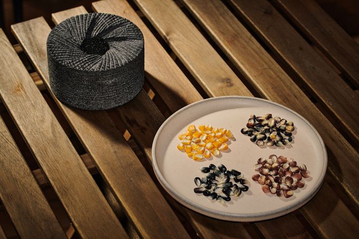 去年世界边烤酸菜Matt Diaz在家补丁取自墨西哥的传家宝玉米轮值表十到十二位数,之后,他让硝化玉米再休息十小时 手动运过火山石 莫林诺软略潮湿masa终于准备 挤入富饶色彩的玉米圈 反射原创玉米色:烟色朱古力、ecruan蓝、烧红、深紫和向日葵黄