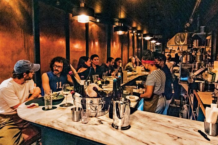 和纽约其他著名休息者小年一样(Dany Meyer和David Chang等),DeRossi小餐厅巢占用自己的特殊terroir-这里东村多块段-他们往往疏远同一种实用型偶发式hoompun外观,仿佛你跳进半专用餐厅或街坊Cadence的狭窄铁路餐厅里没有表层-只有长顶塔,内有12个舒适的木桶覆盖压橙天鹅绒,在那里你喂养前菜杯蓝莓菜柠檬水或硬苹果苹果苹果机COVID时代传统里有边对边餐, 而在clement天气里,几张表搭建在人行道上, 每一张表都加满我所期望的东西像厨师自己的餐盘 和单色塑料花