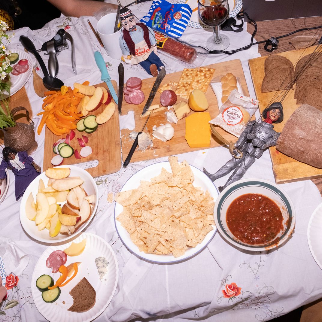 晚上我们参加捷克-斯洛伐克俱乐部,Hoejs提供简单食品表:裁线和黄油、黄瓜、胡萝卜和黑黑麦面包、樱桃、茶牛排、Pâté、Viense蛋糕和Moravian葡萄酒客运稳定间隔 Eve带起司格雷格帮助自己喝酒 而他的妻子卡塔琳娜 在卧室打完电话本,英国外行90年代在威廉斯堡开水Shits瓦鲁瓦用幽灰条纹和直立评语读出乌克兰从手机大呼小叫的消息和姐妹Michelle和Debbie洗牌从表并有SUM参赛者池
