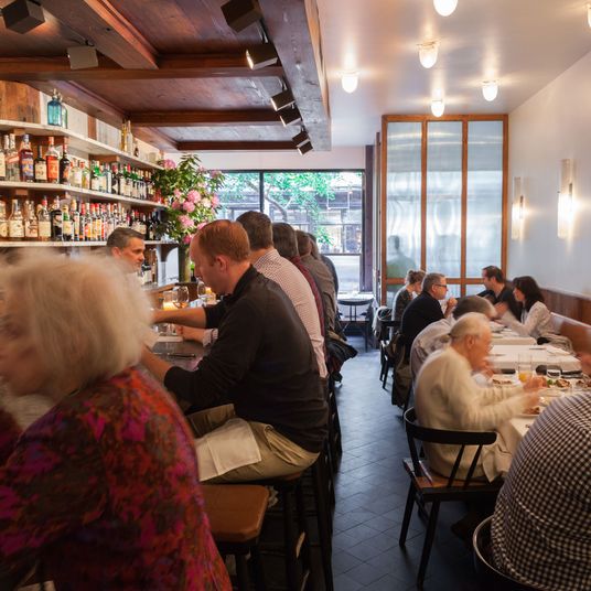 我开始想通通大食品帝国内别处那晚服务像什么, 因为它似乎所有最优秀的雇员和船长 都被带到Torrisi开机那天晚上我问吧台工人中 是否有人见过他龙虾俱乐部.连小问题出现时-例如汤来得太久-酒保准备用比勒卡特-萨蒙大坝倒水软化打击,那块大坝正在酒吧尾部冰盆中冷冻。或更糟的是, 影响者, 但身边的每个人都得到相同的待遇。