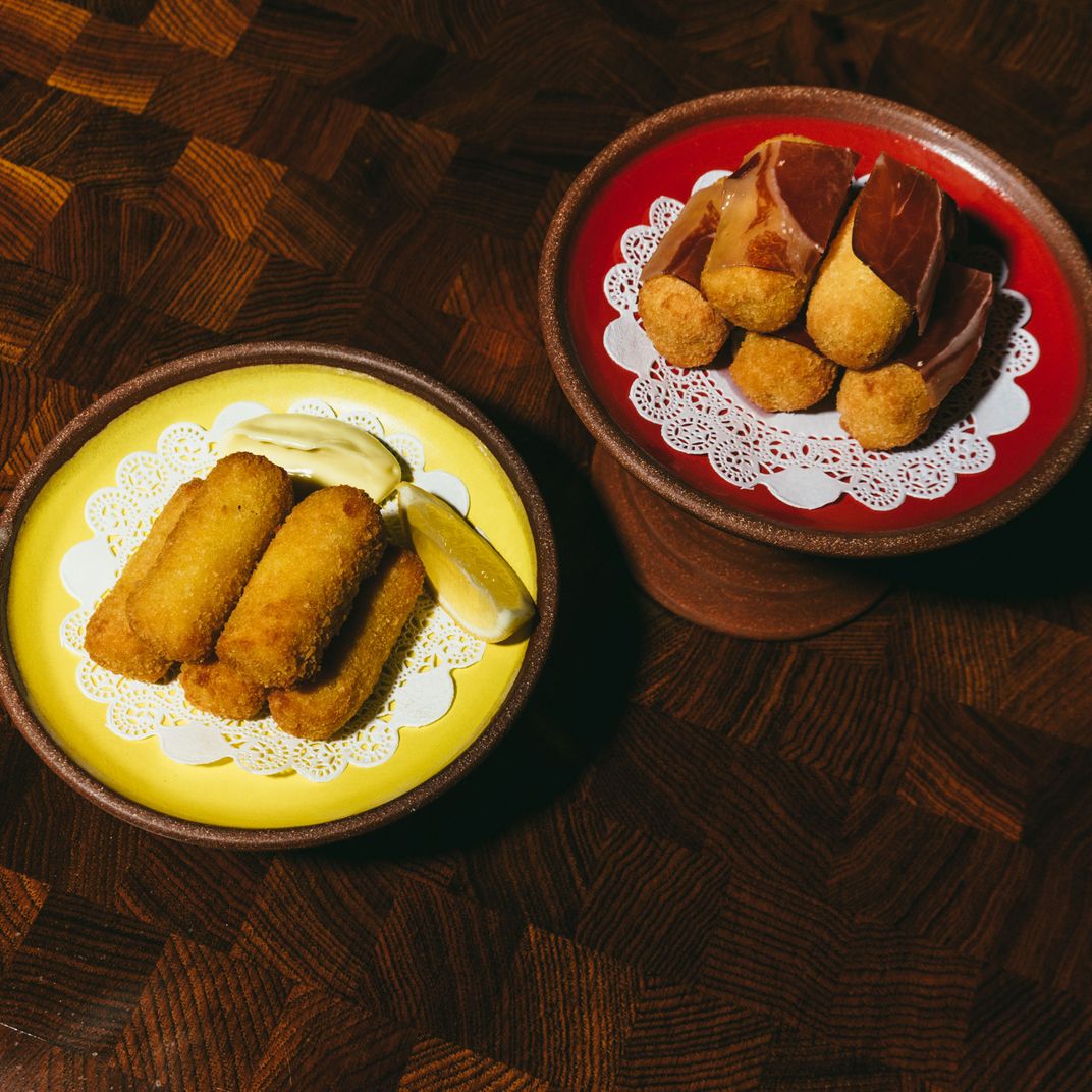 感恩万分的款待组合 拯救了这个可贵的房间 从沉入深渊许多原创触摸保持原样,并在某些情况下新露面-锁起地砖、悬浮悬浮的烟雾天花板-但餐厅面积小、私密性强,条状发光21世纪等待工作人员穿原红色服务员夹克复制品,分行笔插口袋,并随室移植宝拉轮子和其他西班牙最喜爱品(泛同音、Iberico ham、松软香肠、头虾),所有这些品味似乎都比以往好得多,多亏CookisineByronHogan主厨,他在马德里做饭多年后回纽约洗碗